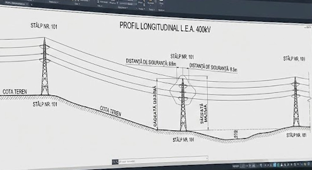 Coridor de studiu pentru reabilitare linie electrică aeriană (LEA) înaltă tensiune în zona metropolitană Craiova. Identificare obstacole, intersecții cu alte rețele, profil longitudinal și planuri de situație pentru proiectare.