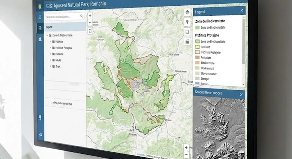 Proiect de cartografie GIS pentru monitorizarea habitatelor și biodiversității îin Parcul Natural Apuseni. Am integrat imagini satelitare, date de teren și clasificări pentru planul de management.